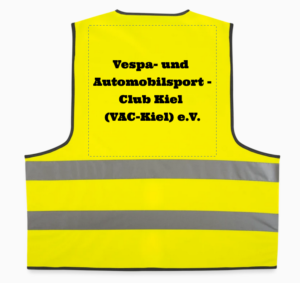 Die VAC Clothes A-F haben auf dem T-Shirt, Sweatshirt und Hoodie vorn ein großes VAC-Logo, das Polo-Shirt und College Sweat Shirt haben vorn ein kleines VAC-Logo und alle hinten den VAC Schriftzug in weiß. Die Snapback Cap hat vorn den VAC-Kiel e.V. Schriftzug. Die Warnweste gibts nur in einer Größe und hat hinten den VAC Schriftzug drauf. Preise für die VAC-Clothes sind abhängig von der bestellten Menge. Die Preise basieren auf Stückzahlen von mindestens 25 Stück in einem Los!